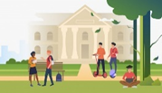 La Universidad está junto al parque.